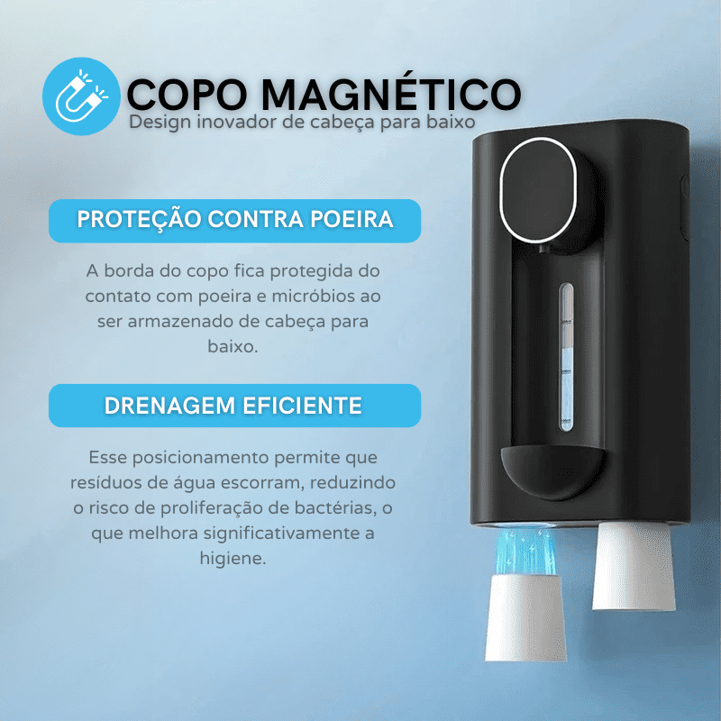 O Dispenser Enxaguante Bucal Automático USB Recarregável irá transformar sua rotina de higiene. Instalação fácil com adesivo sem furos ou sobre a bancada, oferece três níveis de distribuição ajustáveis, sensor automático e design moderno com dois copos magnéticos. Praticidade e elegância para seu banheiro.