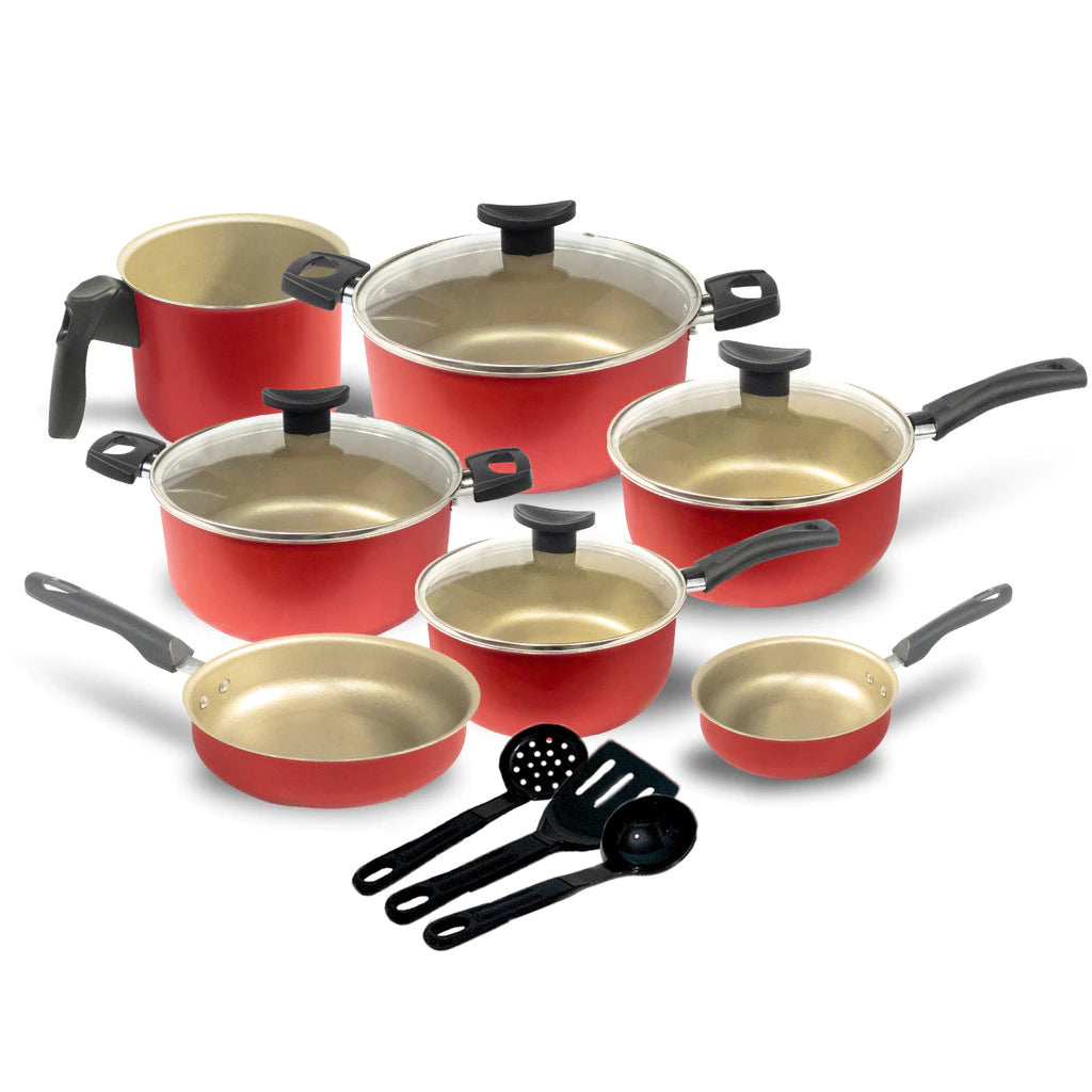 O Jogo de Panelas Antiaderente com 10 peças é a escolha ideal para transformar sua cozinha. Com revestimento em Teflon e tampas de vidro temperado, oferece cozimento uniforme, praticidade na limpeza e um visual moderno que combina com qualquer ambiente.