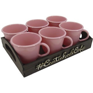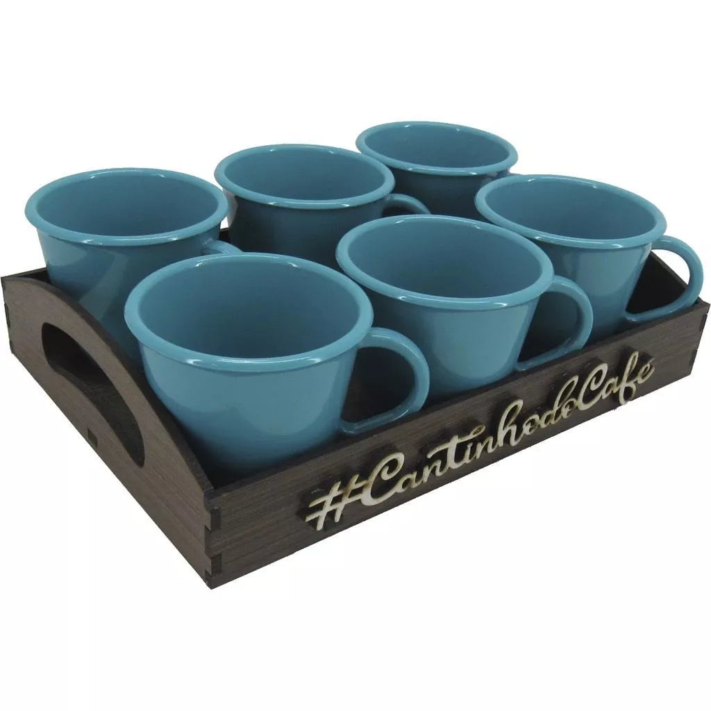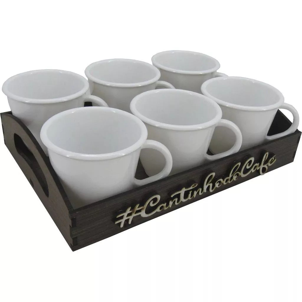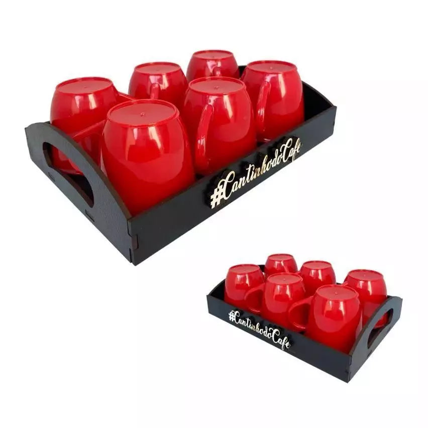 Kit Bandeja Decorativa com 6 Xícaras em Acrílico – Cantinho do Café ou Chá | Escolha sua Cor