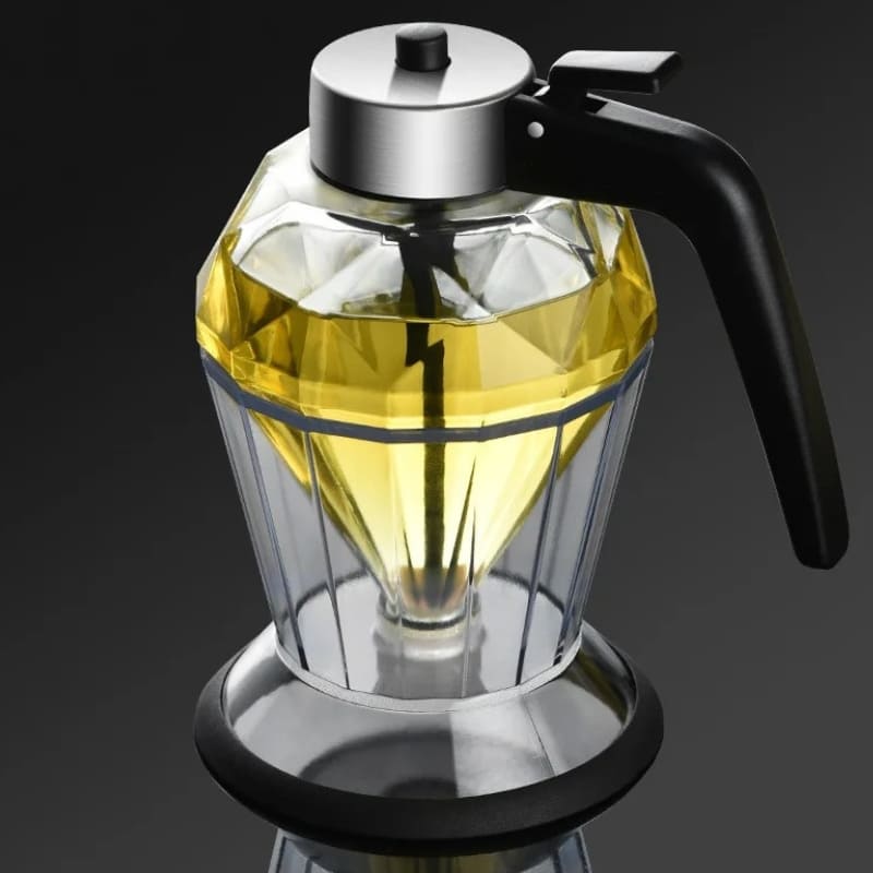O Meleira de Vidro Porta Mel Dispenser com Base é ótimo para armazenar e exibir mel. Este dispensador de mel tem um design elegante e exclusivo em forma de diamante que adiciona um toque especial à sua cozinha. Conta com base antiqueda, antiderrapante e frasco com silicone à prova de gotejamento.