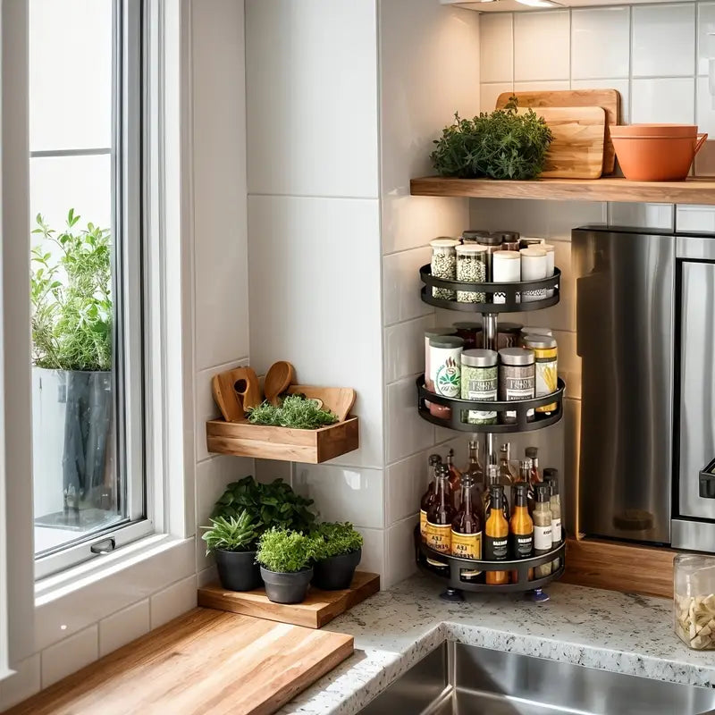 Com o Organizador Giratório de Bandeja, você pode transformar completamente o jeito de organizar sua casa. Ele é ideal não só para temperos, mas também para armazenar frascos, latas, itens de higiene ou pequenos eletrodomésticos. A capacidade de girar 360° elimina o esforço de procurar itens no fundo de prateleiras ou armários apertados.
