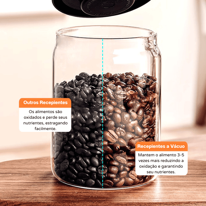 - 1x Pote de Vidro com Tampa Hermética Café a Vácuo;