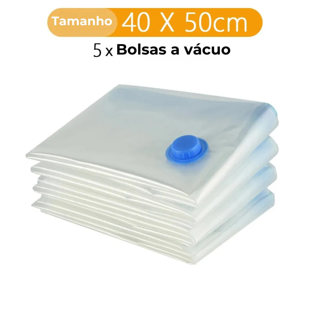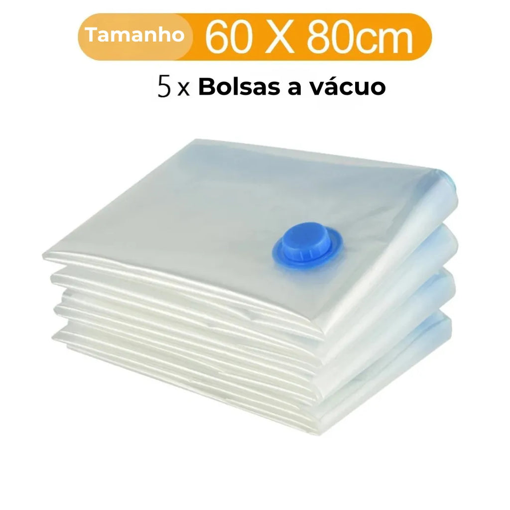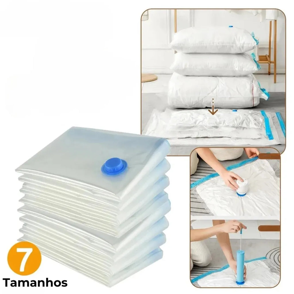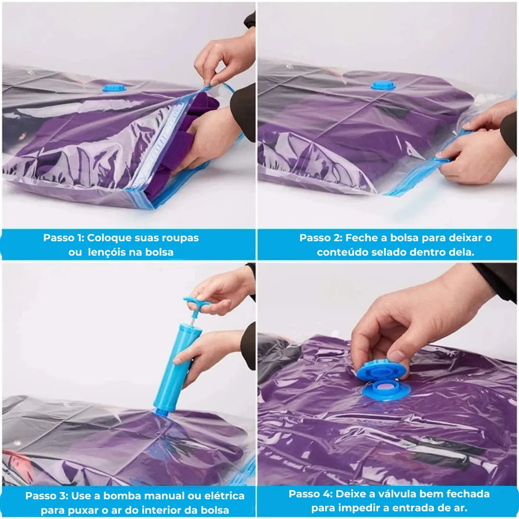 Com os Sacos a Vácuo, você ganha até 80% mais espaço na sua mala. Ideal para viagens longas ou curtas, agora cabe tudo sem esforço!
