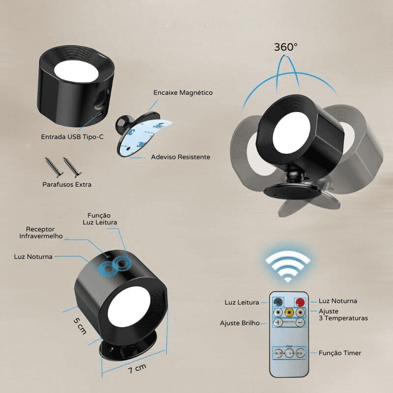 • 1x Arandela de Parede Interna LED Bifocal Sem Fio;