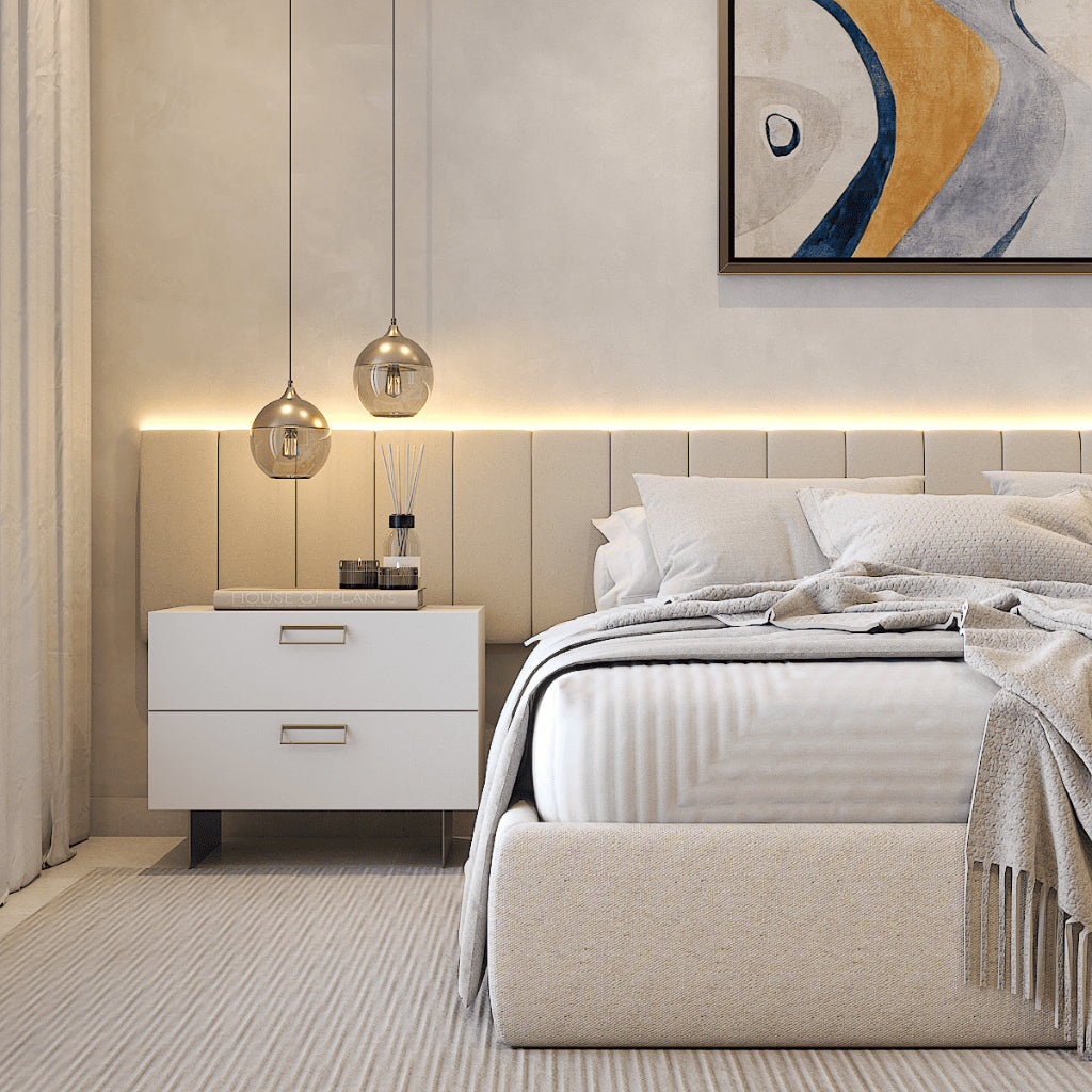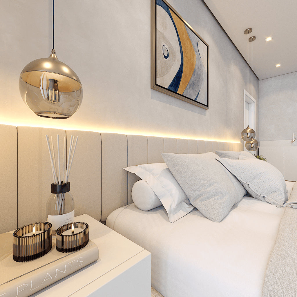 Renove o visual do seu quarto com o Kit de Cabeceiras Modulares Estofadas. Com acabamento premium em veludo e instalação super prática, essas placas trazem charme, aconchego e modernidade para a sua decoração.