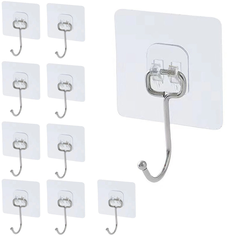 Kit 10 Ganchos Adesivos Transparente – Fixação Forte para Cozinha, Banheiro e Mais