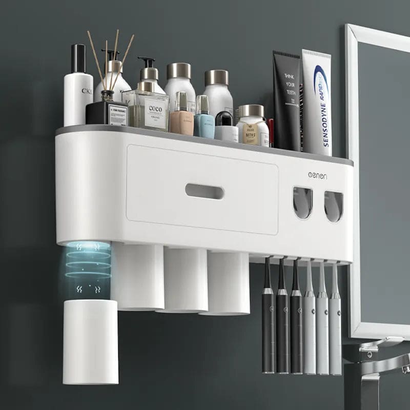 - 1x Porta Escova de Dente Dispenser com Gaveta e Copos.