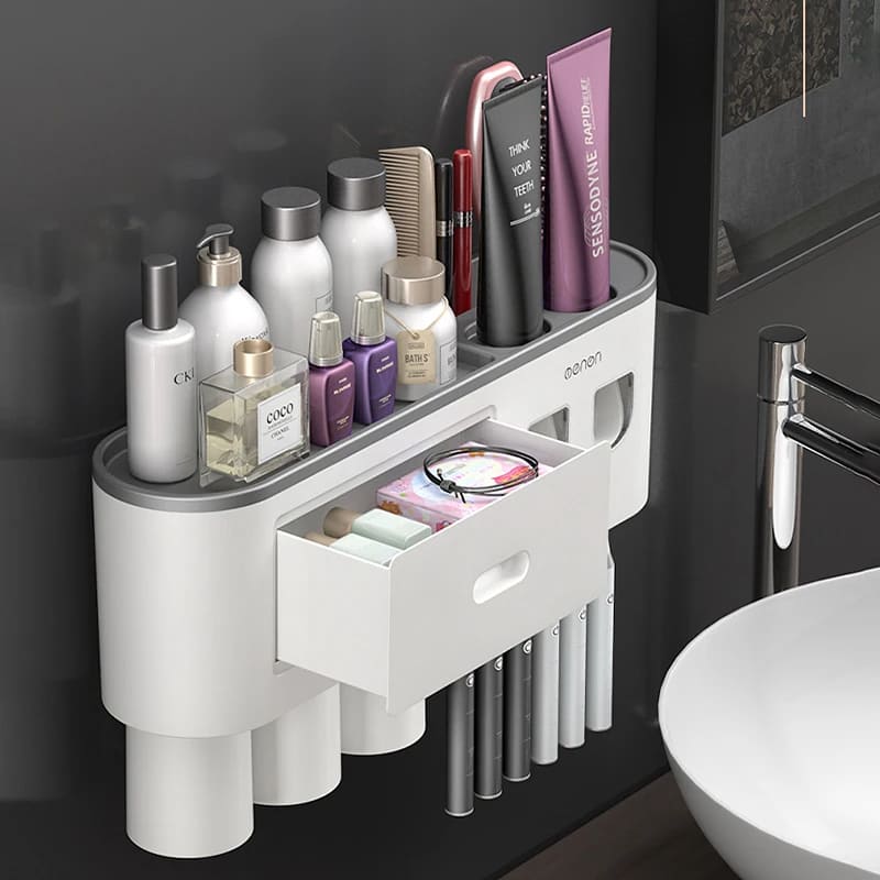 O Porta Escova de Dente Dispenser com Gaveta e Copos vai ajudar a manter seu banheiro mais organizado. Pode ser usado por adultos e crianças fazendo com que adorarem escovar os dentes. Conta com organizador de escova, dispenser de pasta de dente, gaveta organizadora, copos magnéticos e muita praticidade.